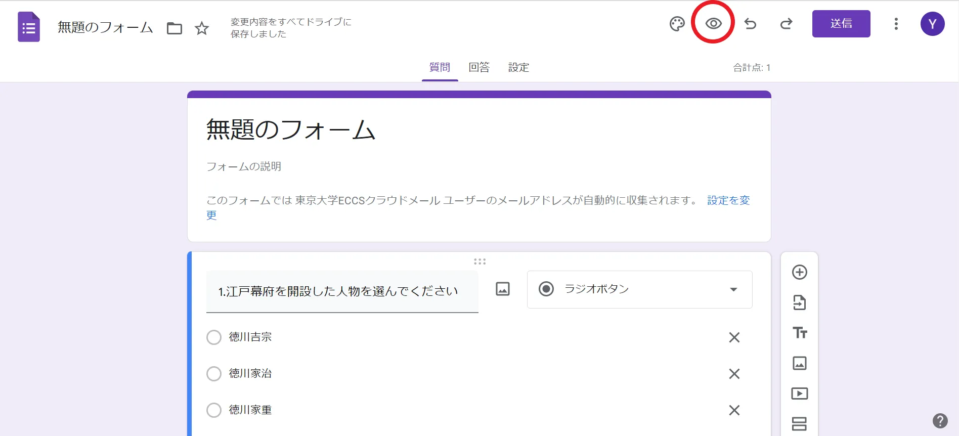 フォームの回答者を学内構成員(ECCSクラウドメールのアカウント保有者)のみに制限したい場合