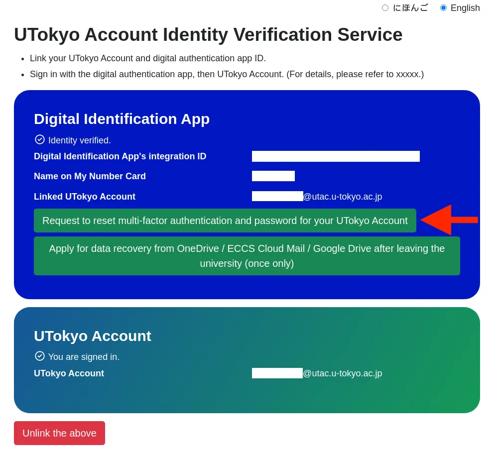- You must have completed the pre-link for the UTokyo Account Identity Verification Service.
