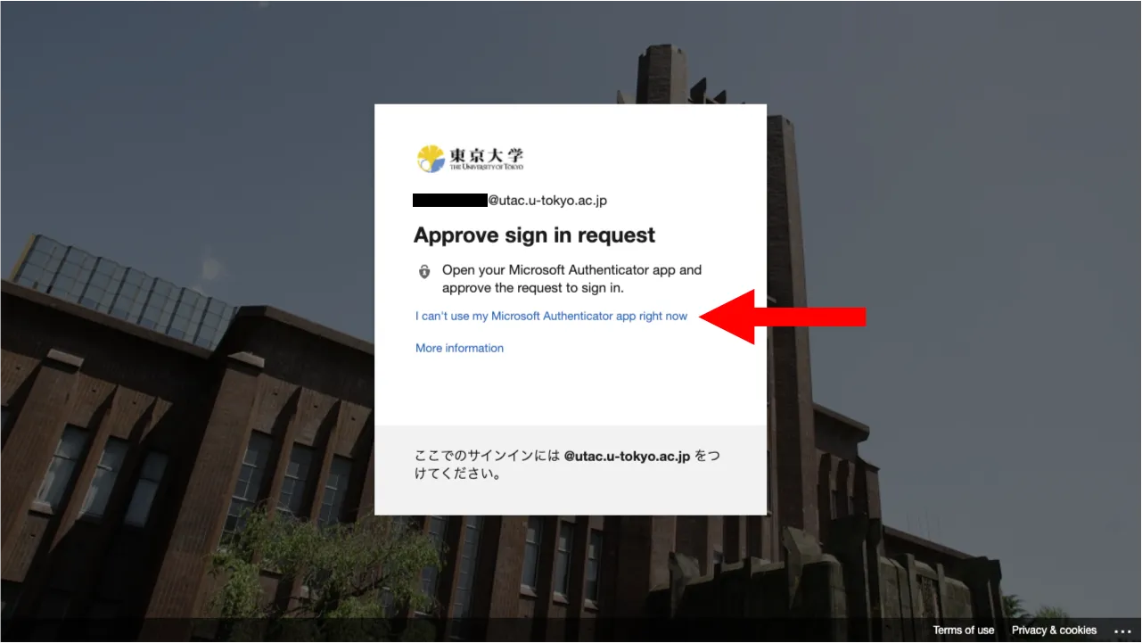 - If any of the verification methods in the list are available for use, you can use that method to sign in to your UTokyo Account.