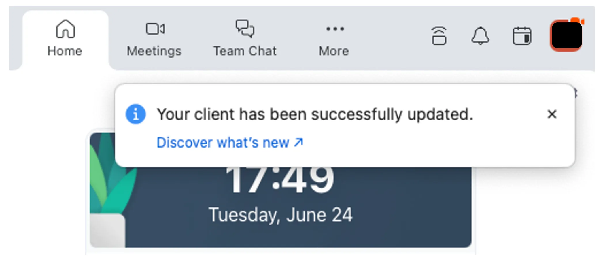 Also, it is useful to set your settings for automatic updates. Press the gear icon in the upper right corner of the home screen to open the settings window, and by checking the box for “Update app automatically” in the “General” section, automatic updates are enabled. In this way, when a newer version of Zoom becomes available, a message that prompts updating as shown in the image below is displayed.