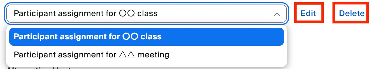 The participant list for manual assignment is sorted by name. Therefore, having participants set their names according to their group (e.g.by adding a number or group name to the beginning of their name) can make it easier to find them. Participants can change their own names, or the host can change them. For details, see the “Usages in Zoom Meeting” page.