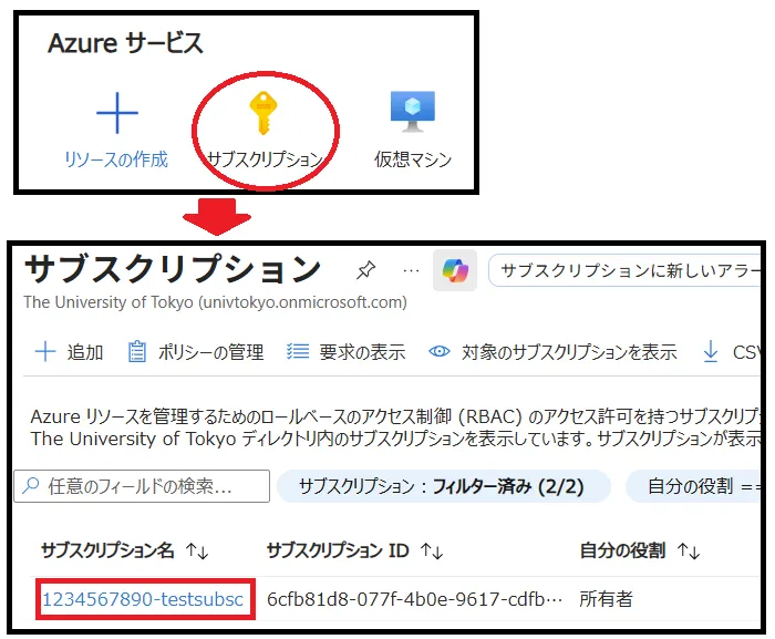 - Azure portal のサブスクリプションサービスを確認し,申請したサブスクリプションが表示されましたら利用可能です.