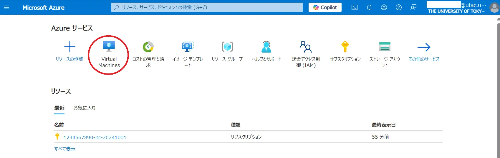 Azure portalにUTokyo Accountでログインし,リソースの欄にサブスクリプションがない場合(下図参照),先に以下のURLからサブスクリプションを申請してください.