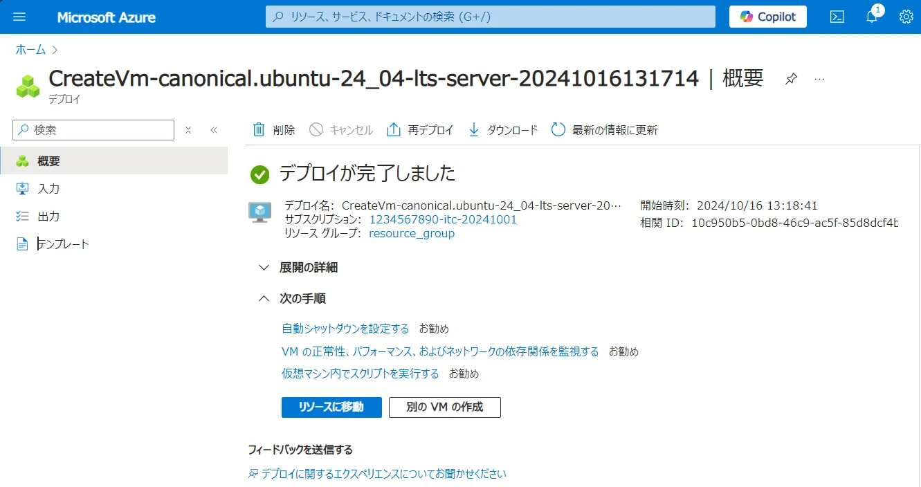 resource_groupというリソースグループ名で作成し,以下に作成される各リソースをまとめます.まとめられたリソースは,権限の継承や削除などを一括で対応することが可能となります.