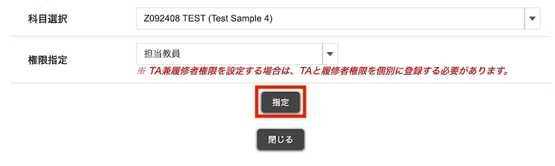 - ユーザを「TA兼履修者」として登録したい場合は,それぞれの権限について別々に登録作業が必要です.