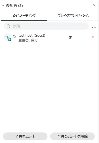 • 参加者の一覧がメインミーティングとブレイクアウトセッションに分かれます.ブレイクアウトセッションには各セッションごとに参加者が一覧表示されます.