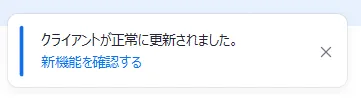 また,自動更新の設定をしておくと便利です.ホーム画面右上の歯車のアイコンを押して設定ウィンドウを開き,「一般」の「Zoomデスクトップクライアントを自動更新する」にチェックを入れることで自動更新が有効になります.こうすることで,Zoomの新しいバージョンが利用可能な場合,下の画像のように更新を促すメッセージが表示されます. メッセージが出たときに「あとで」を押す,またはウィンドウを閉じた場合,次にアプリを起動したときに更新プログラムが自動的にインストールされ,以下のメッセージが表示されます.